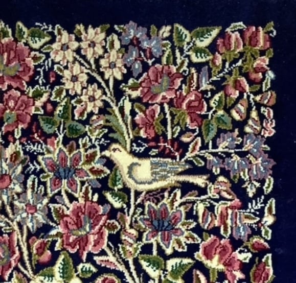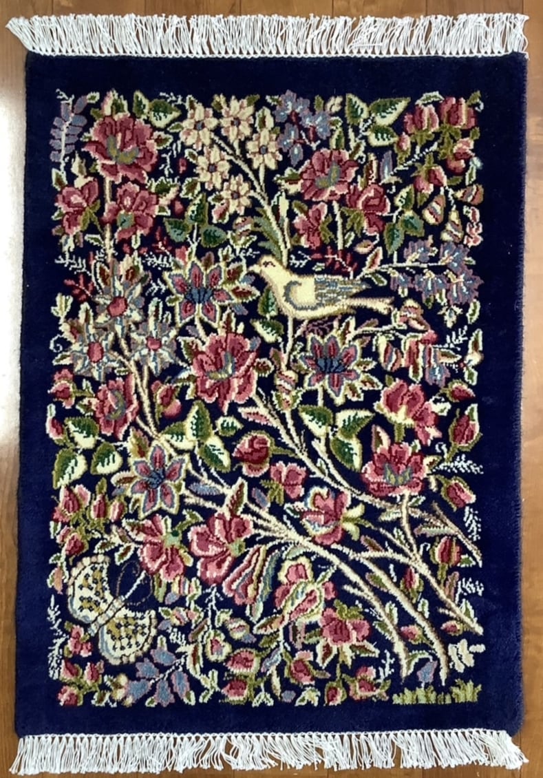 イランの有名絨毯産地ケルマンの千花模様(ミル・フルール)の小さ目のウール製マットです。