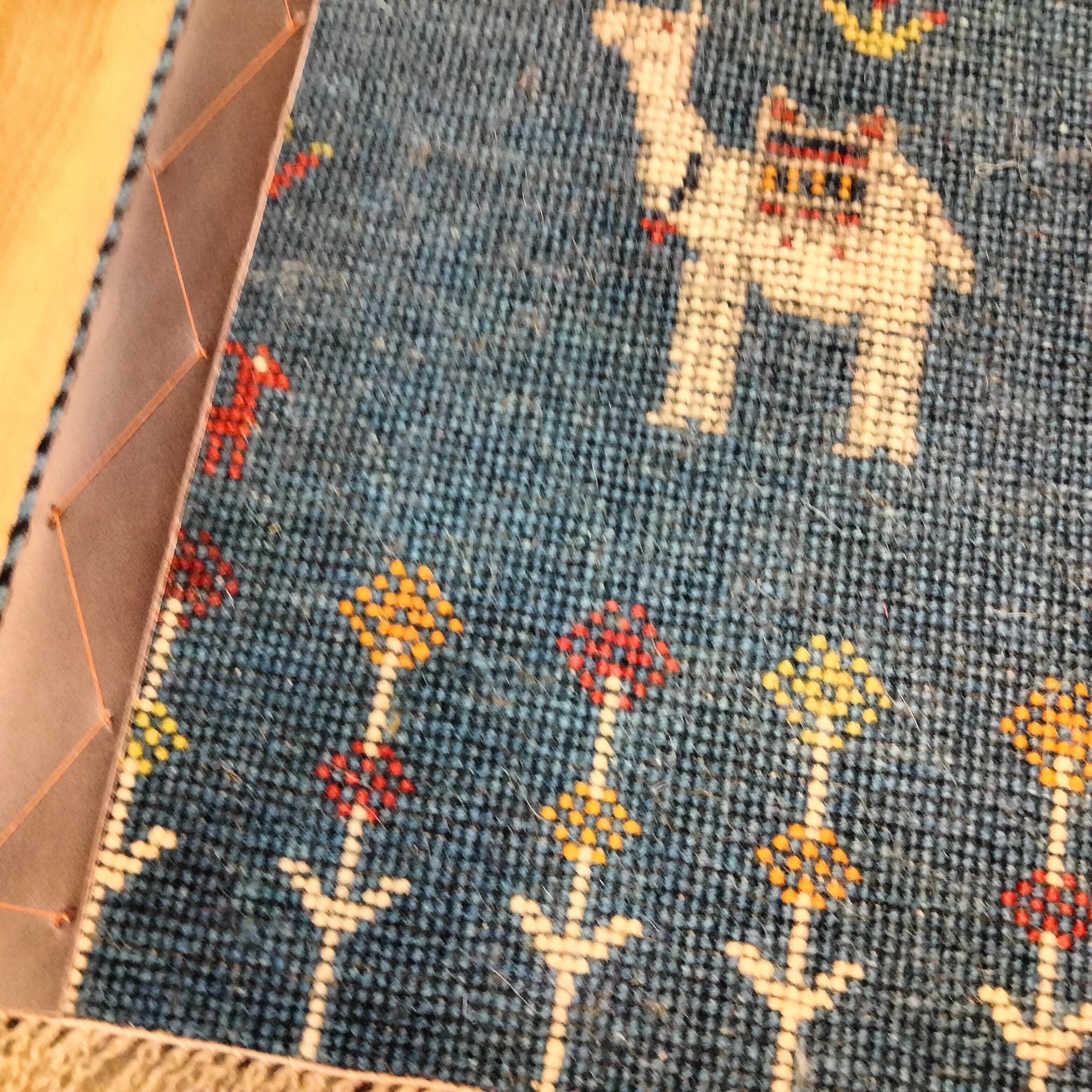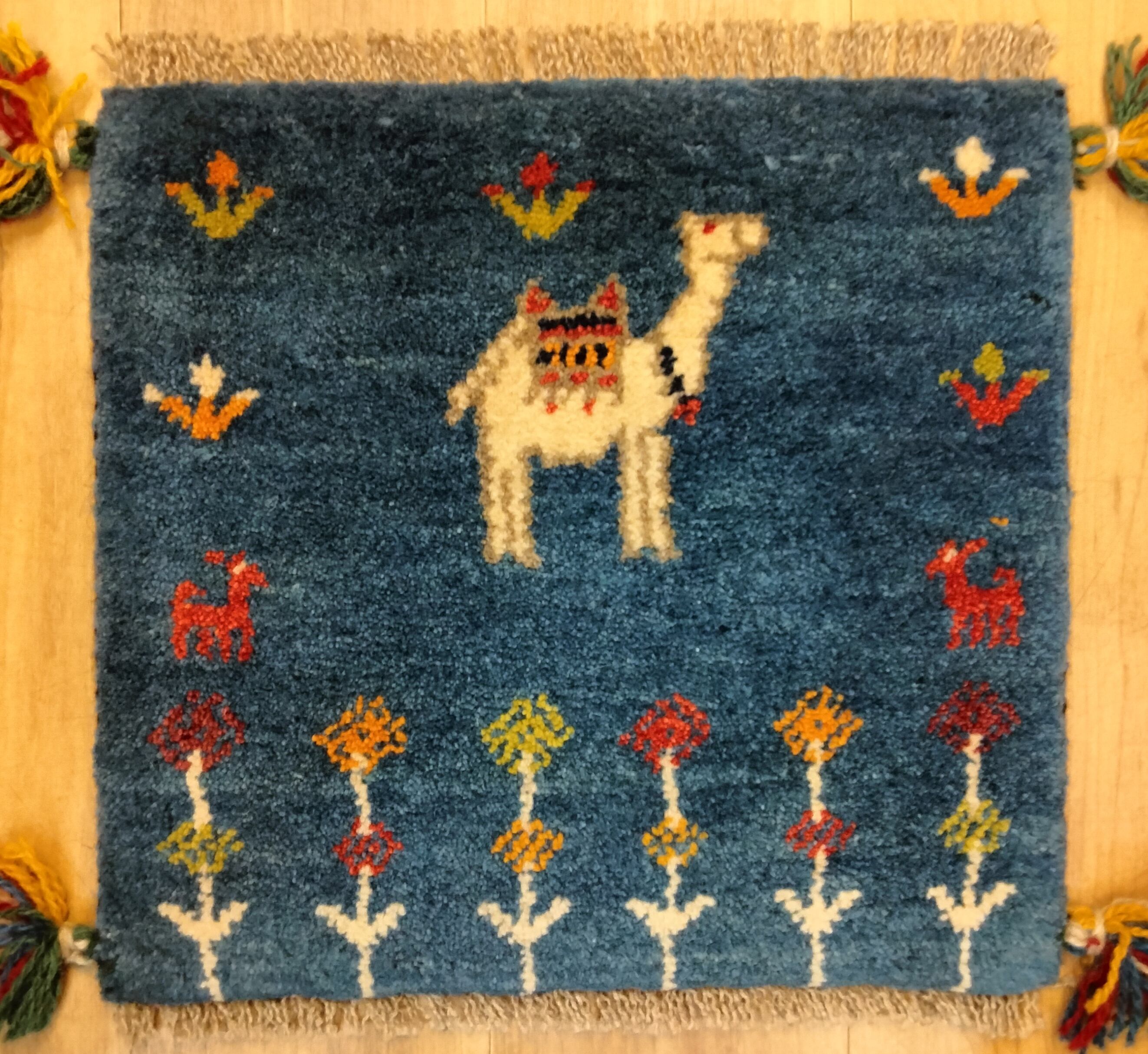 本場イランでウール100%手結び手織りされたペルシャンギャッベの座布団サイズ、約40cm角です。肉厚フカフカな仕上げが特徴で、椅子やソファーの座面にぴったりフィットします。コンパクトなサイズながらも存在感は抜群で、お部屋の雰囲気を引き立ててくれることでしょう!