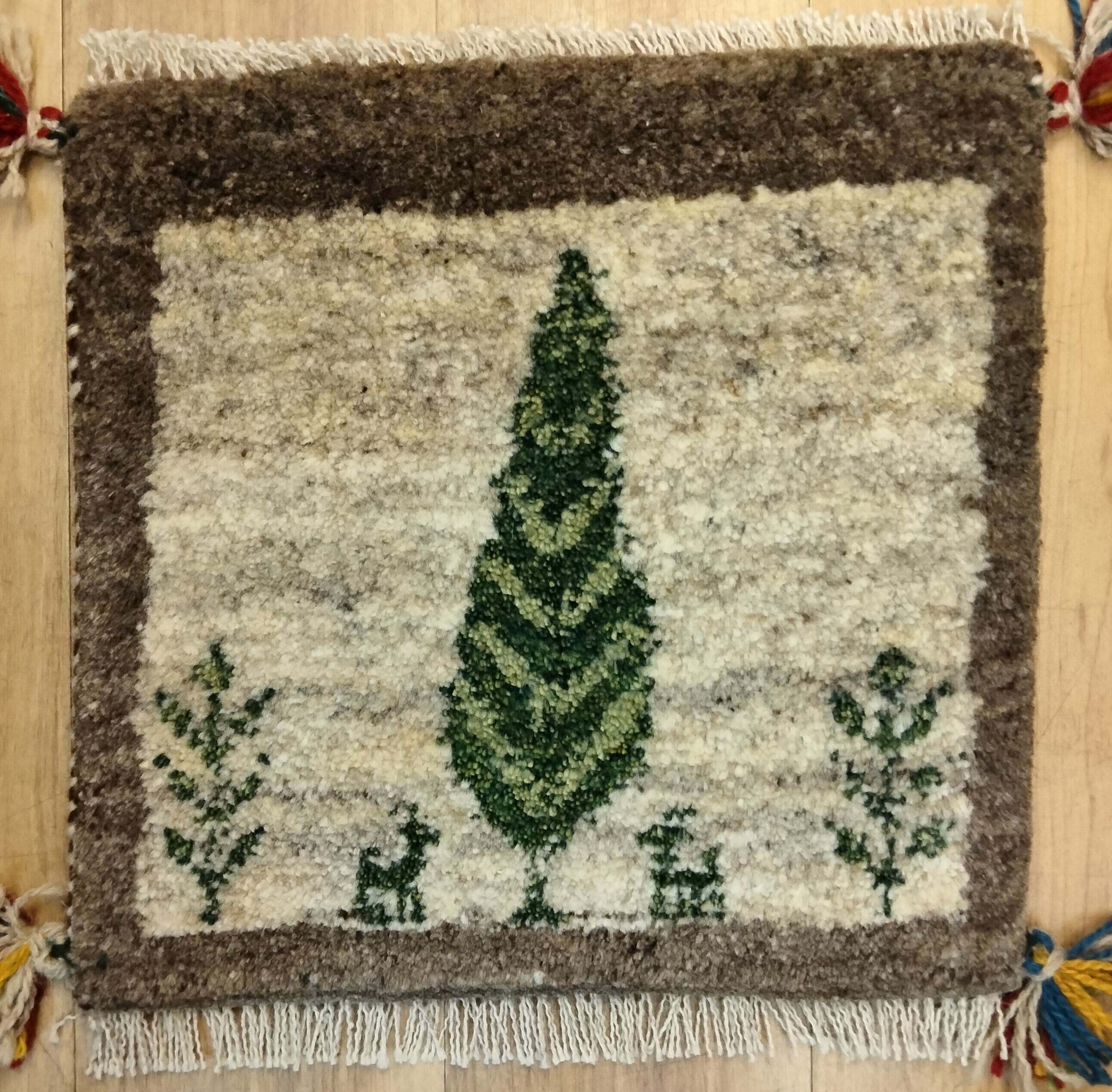 本場イランでウール100%手結び手織りされたペルシャンギャッベの座布団サイズ、約40cm角です。肉厚フカフカな仕上げが特徴で、椅子やソファーの座面にぴったりフィットします。コンパクトなサイズながらもその存在感は際立っており、お部屋の雰囲気をより一層引き立ててくれることでしょう!
