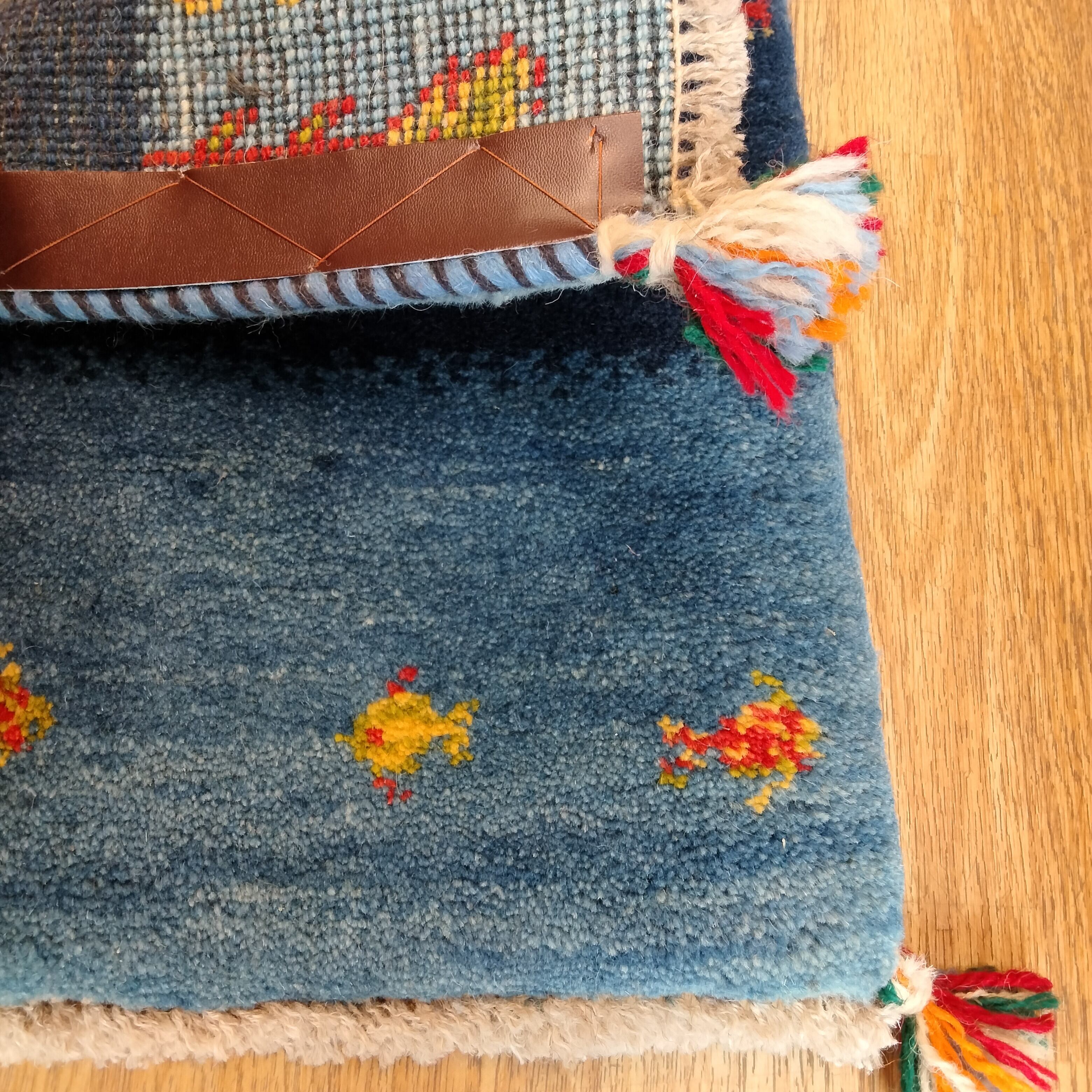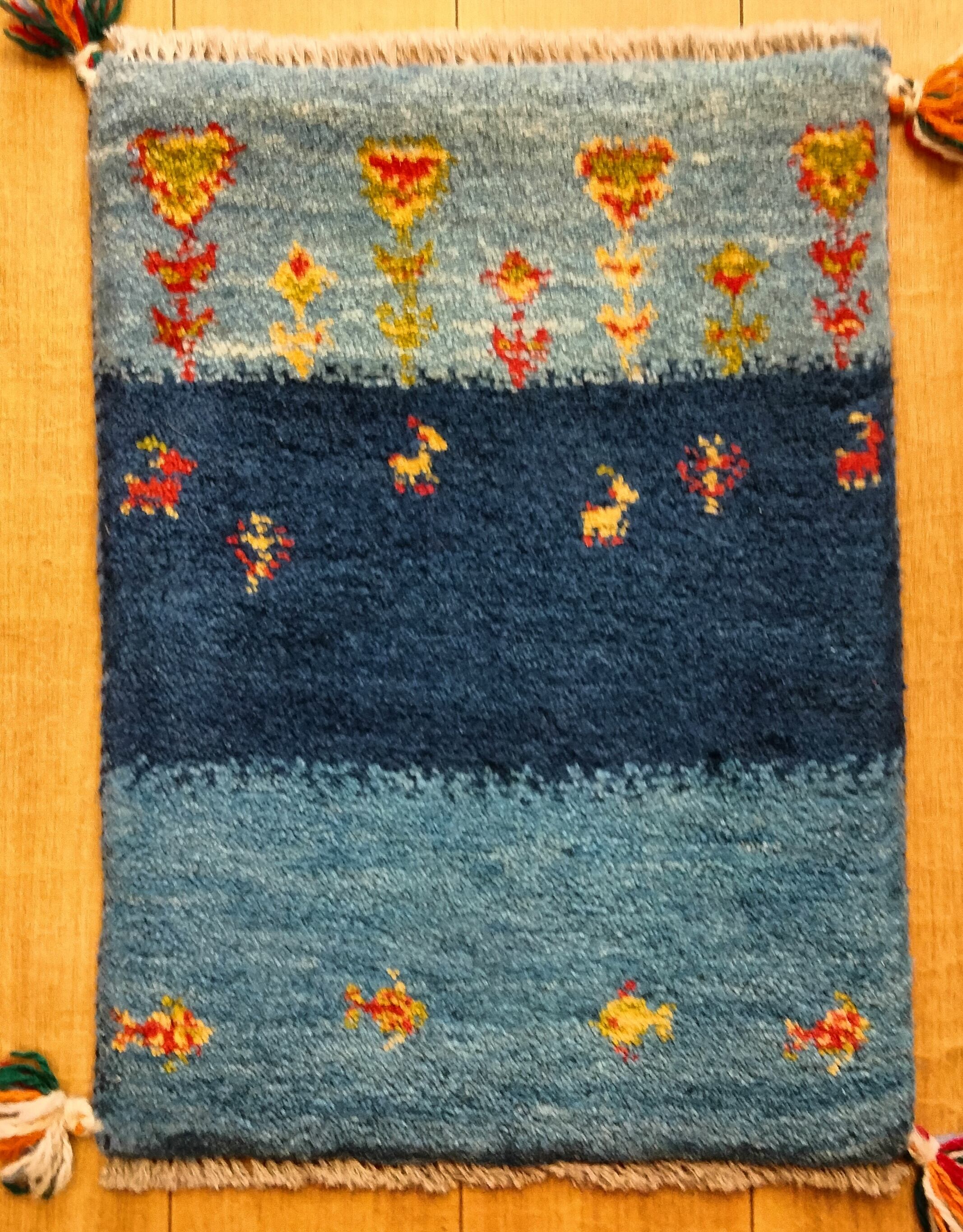 本場イランでウール100%手結び手織りされた素朴で可愛らしいペルシャンギャッベ絨毯です。