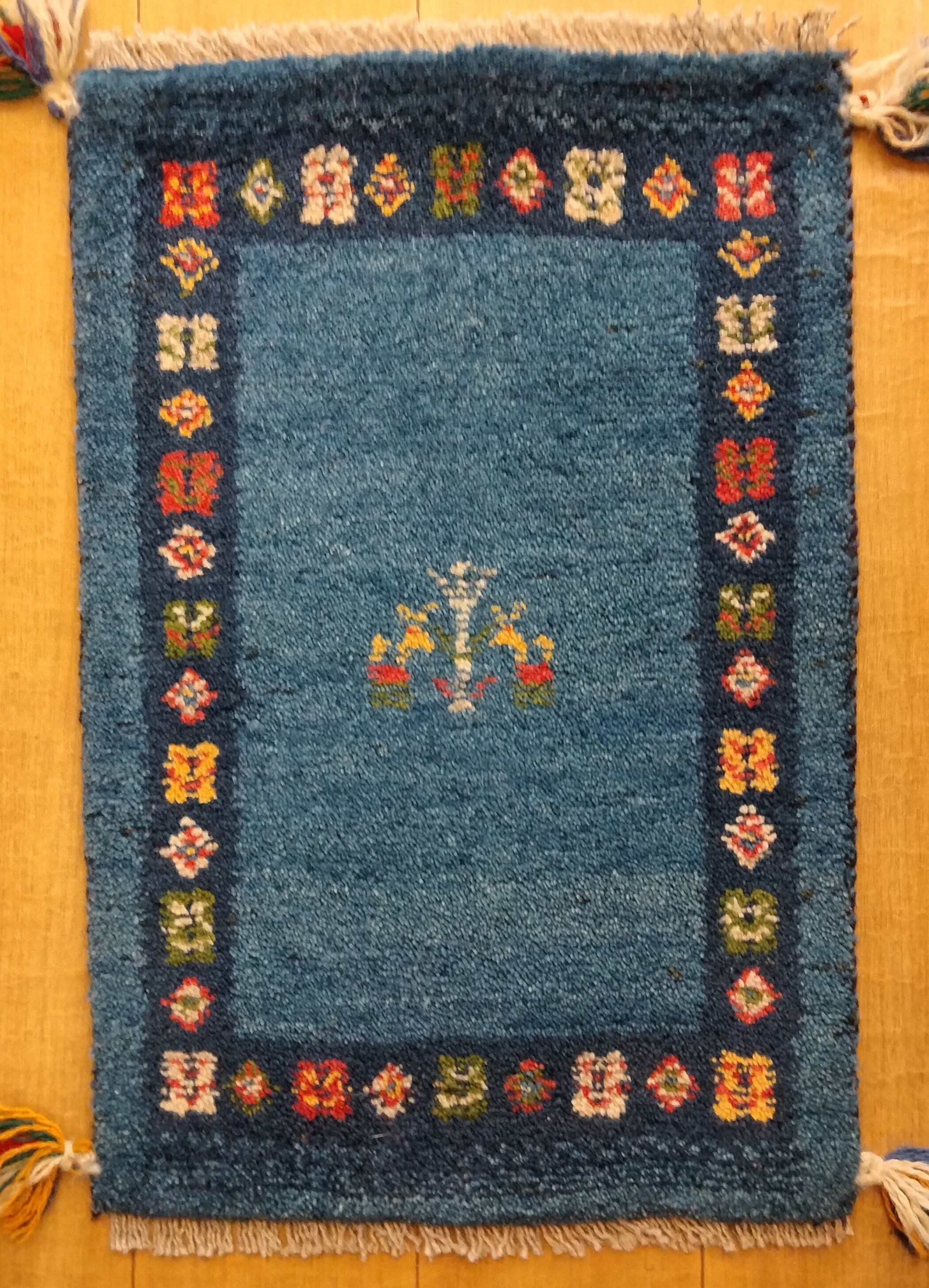 本場イランでウール100%手結び手織りされた、素朴で可愛らしいペルシャンギャッベ絨毯です。サイズは約41✕61cmで、お部屋やオフィスなど様々なインテリアスタイルに自然に溶け込み、一層魅力的な空間を演出してくれます。ユニークなデザインが日常の生活に温もりをもたらすことでしょう!