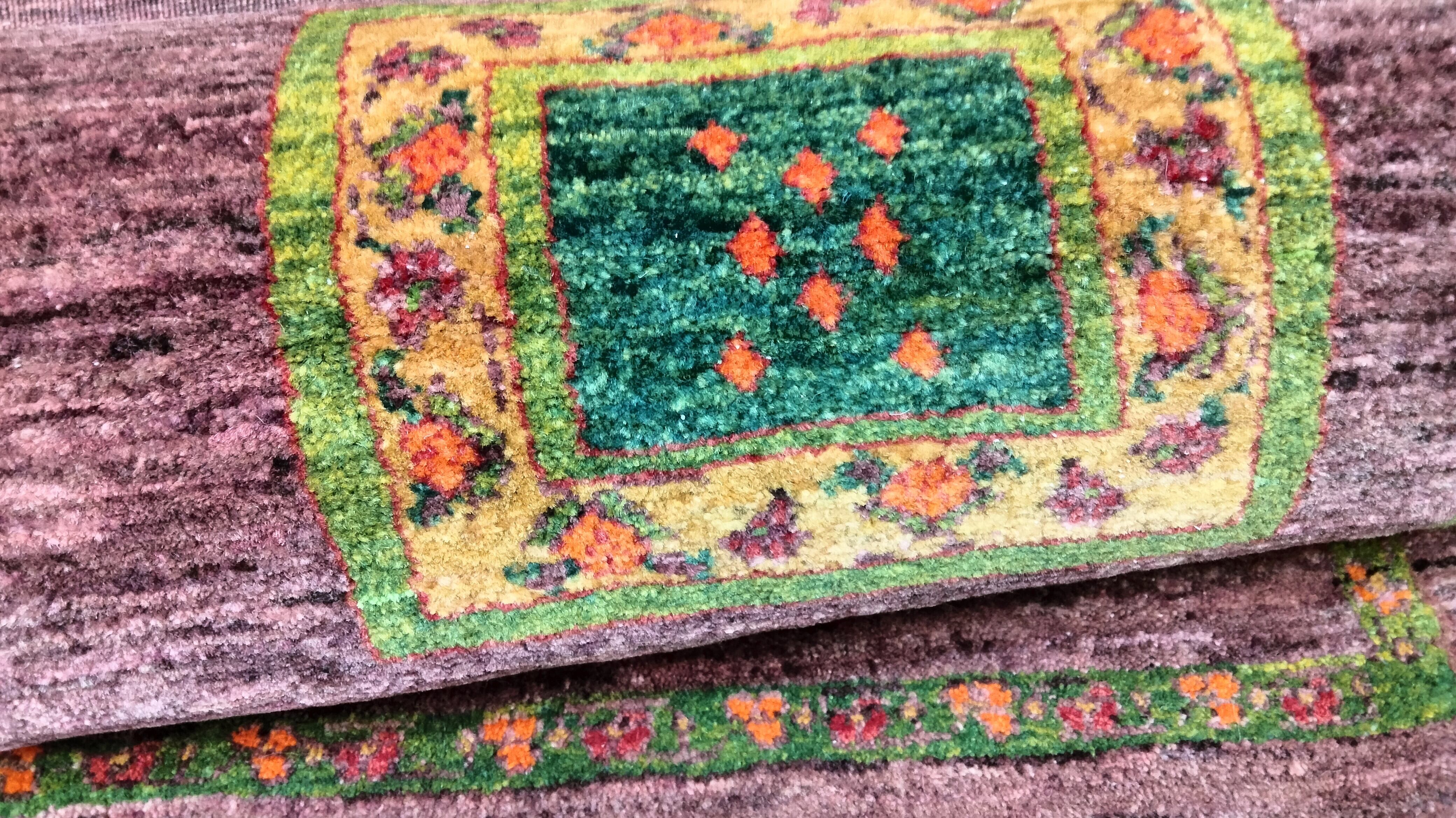 ペルシャンギャッベ絨毯の細かい織りロリバフトです。本場イランで手結び手織りされた丈夫な作りです。