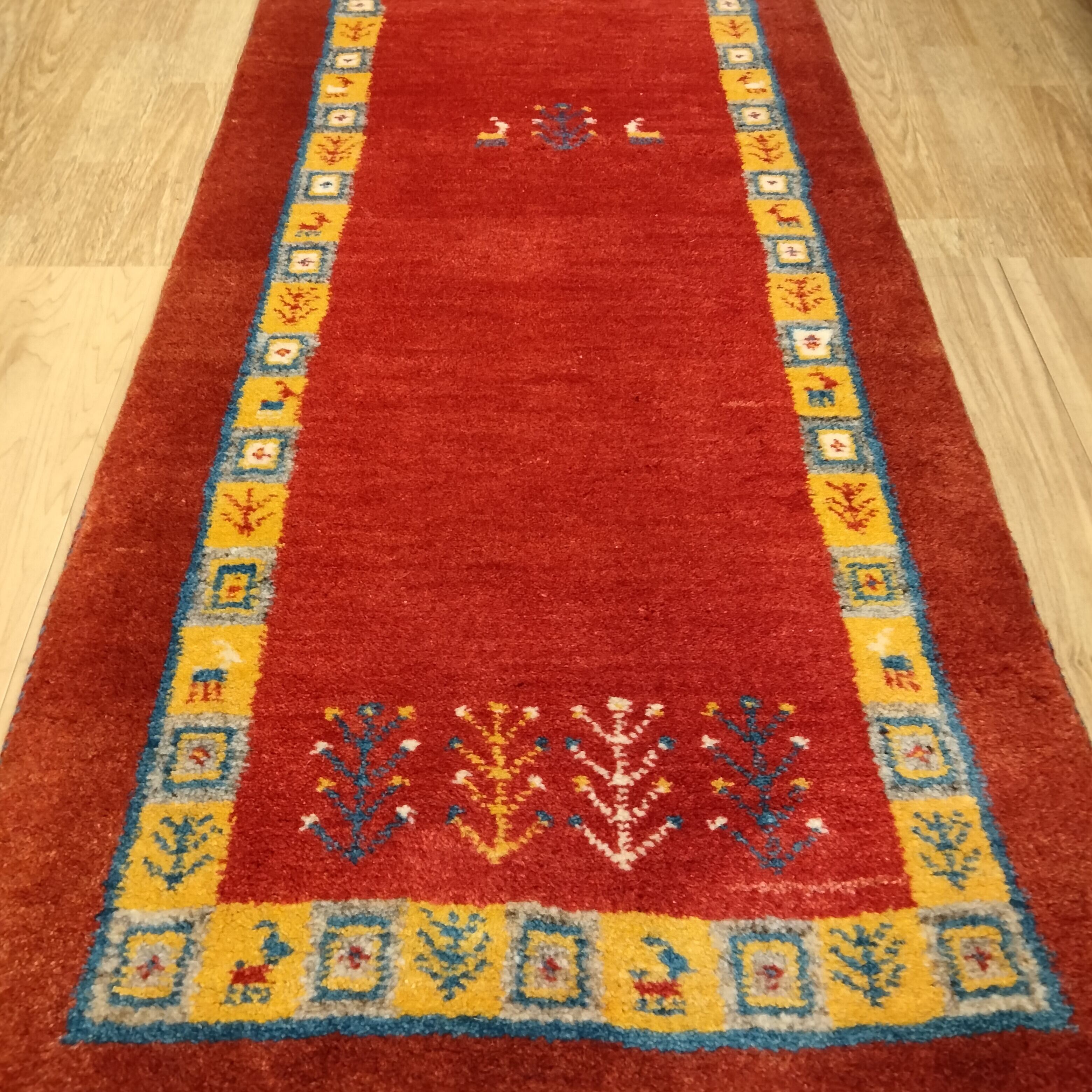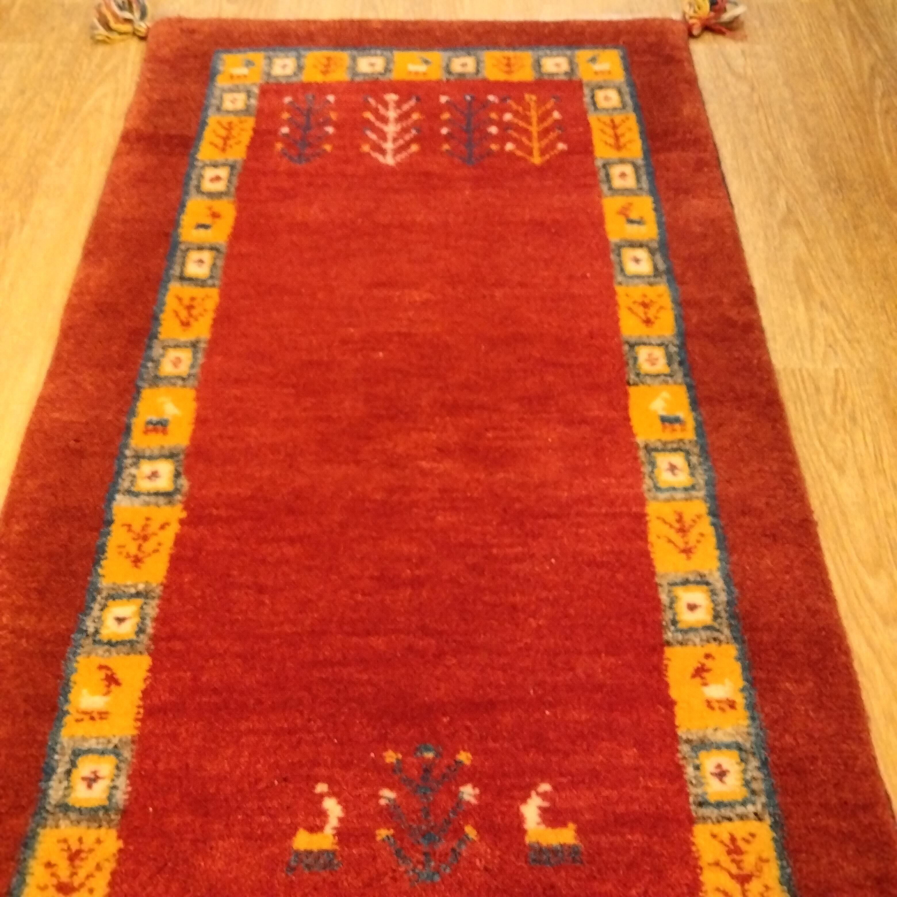 本場のペルシャで手結び手織りで作られたペルシャンギャッベ絨毯です。ウール100%で丈夫で長持ち致します。